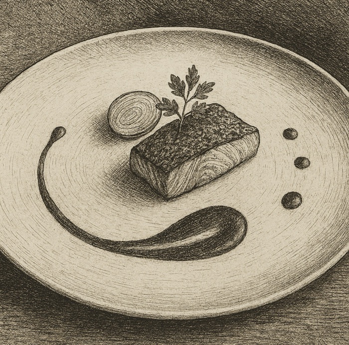 Cette abstraction a-t-elle modifié les habitudes visuelles du spectateur ? Je le crois. Dans la cuisine traditionnelle, la sauce prolongeait le goût ; dans la cuisine moderne, elle structure le rythme visuel. Le spectateur ne cherche plus d’abord sa saveur, mais ressent la tension de sa composition. D’un point de vue esthétique, j’y vois un processus de « défonctionnalisation » : la sauce cesse d’être un outil gustatif pour devenir une trace visuelle. Cette trace possède une temporalité et une gestualité, chaque ligne prolonge le mouvement de la main du chef, chaque point marque une pulsation. Je remarque souvent que les lignes de sauce ont une direction et un élan, comme des traits calligraphiques. Cette dynamique constitue, selon moi, la preuve que la cuisine est devenue performance et que l’assiette est devenue scène.