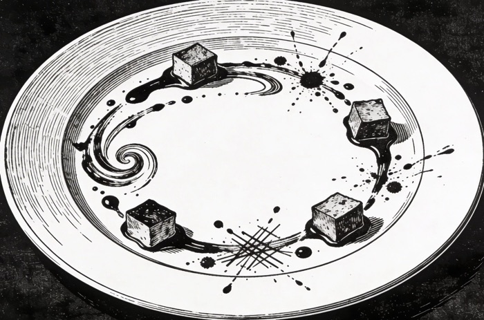 La technique joue ici un rôle crucial. Les dispositifs de contrôle thermique et l’usage de nouveaux agents gélifiants permettent à la sauce de conserver une forme stable et une brillance maîtrisée. Cette contrôlabilité transforme pour la première fois le liquide en matériau plastique prévisible. J’ai le sentiment que lorsque le chef peut déterminer avec précision le diamètre et l’emplacement d’une goutte, il pratique en réalité une micro-architecture spatiale. L’assiette se divise en champs de tension, et la distribution de la sauce détermine le centre de gravité visuel et l’équilibre.